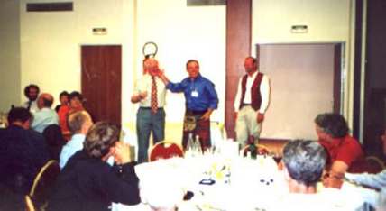 One hundred and four Jupiter owners and spouses joined Gordon Wilkins (co-driver of the class-winning Jupiters for the Le Mans of 1951 and 1952) Phill Green from the Jowett experimental department and Mr & Mrs Peter James from our main sponsor for the celebration banquet. Gordon and Phill were in fine form with amusing and interesting speeches. Gordon had joined us at Le Mans on the Friday lunchtime and was driven about in a Jupiter. See the current (July) issue of Classic & Sports Car magazine for a half-page article on Gordon.